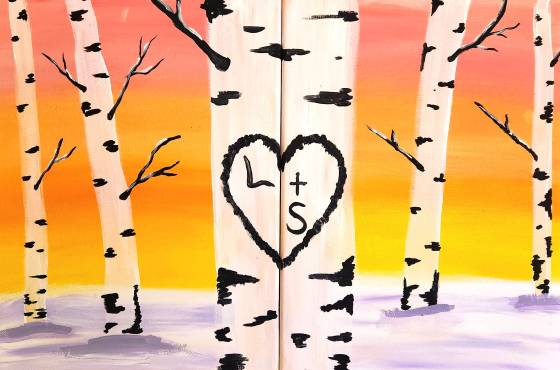 Join us for a Paint & Sip Date Night where you and your partner will each paint your own canvas—then bring them together to reveal a beautiful aspen forest with a heart carved into the tree. It’s a fun, interactive way to create something meaningful side by side. Your ticket includes all painting supplies for you and your partner, plus happy hour specials at The Commons to keep the vibes flowing.