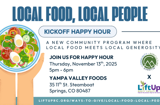 Join us for a happy hour celebrating the launch of Local Food, Local People - a partnership between Community Agriculture Alliance and LiftUp of Routt County that connects local producers with neighbors in need.