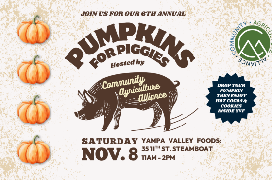 Bring your old pumpkins to Yampa Valley Foods where they’ll be reused as animal feed and compost.