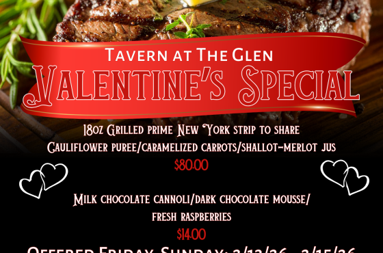 Celebrate love at Tavern at The Glen with North Routt’s best Valentine’s Day dining experience. Enjoy a thoughtfully curated dinner by Chef Pete List, crafted with exceptional ingredients and unforgettable flavors. This special menu is available all weekend, because one night just isn’t enough for love this good. Reservations are recommended- in fact, when you make a Valentine’s Weekend dinner reservation online, you’ll automatically be entered to win a free romantic 2-night stay at the Jack Rabbit Cabin at Glen Eden Resort!
